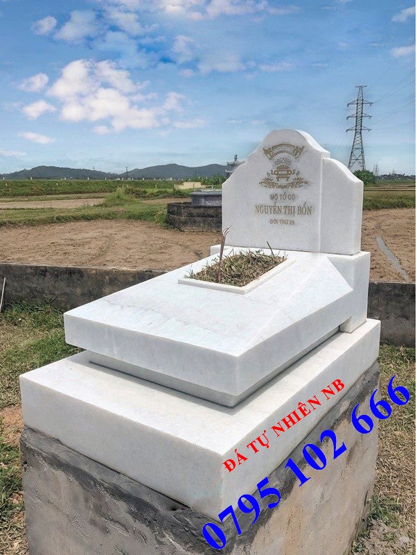 Mộ đá trắng hay còn gọi là mộ đá cẩm thạch là thiết kế mộ đá đẹp thường được xây dựng cho những người mất trẻ, người mất chưa có gia đình. Mộ có nhiều kiểu dáng từ đơn giản tới cầu kỳ phức tạp, nhiều kích thước to nhỏ theo cung lỗ ban. Chất lượng đá trắng tinh khiết, tôn nghiêm và sang trọng được yêu thích.