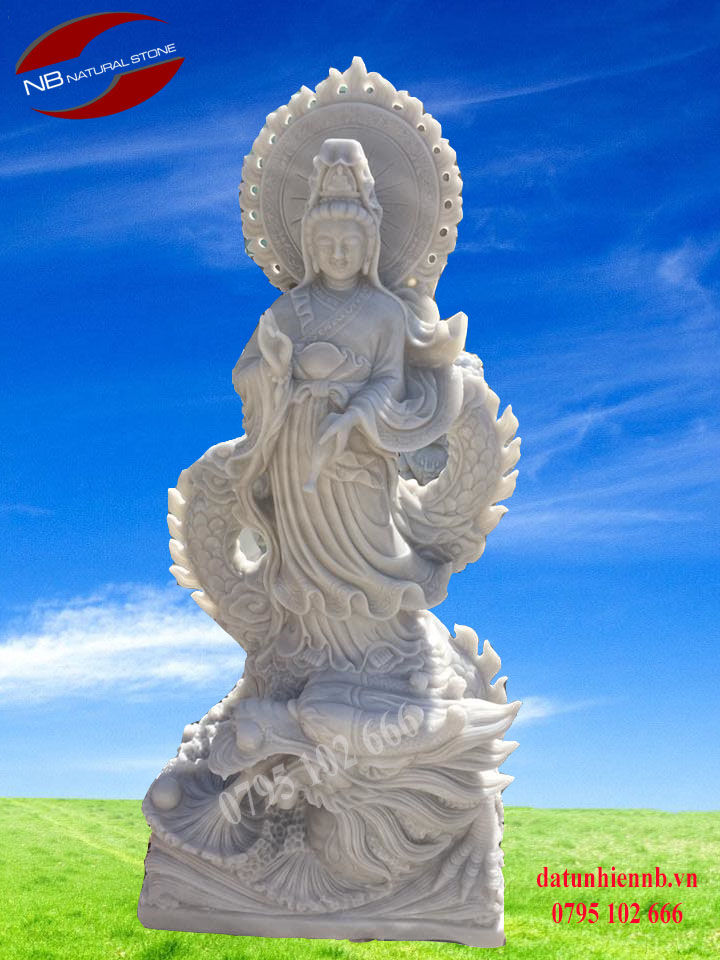 Hình ảnh tượng Phật quan âm bồ tát cưỡi rồng vượt qua muôn vàn bể khổ để đến cứu độ chúng sinh đã trở nên khá phổ biến trong văn hóa người Việt nam. Tượng bồ tát cưỡi rồng bằng đá trắng là một trong những sản phẩm tinh xảo, có độ cầu kỳ và chi tiết nhất đòi hỏi phải những nghệ nhân lâu năm mới có thể chế tác được.