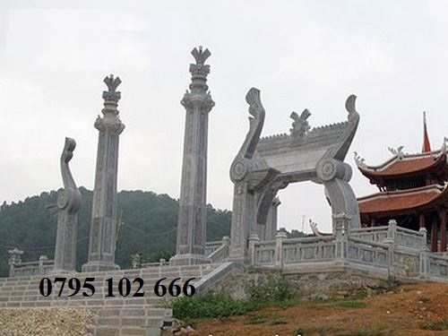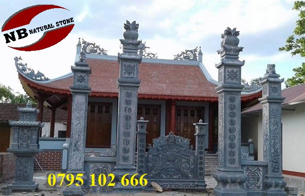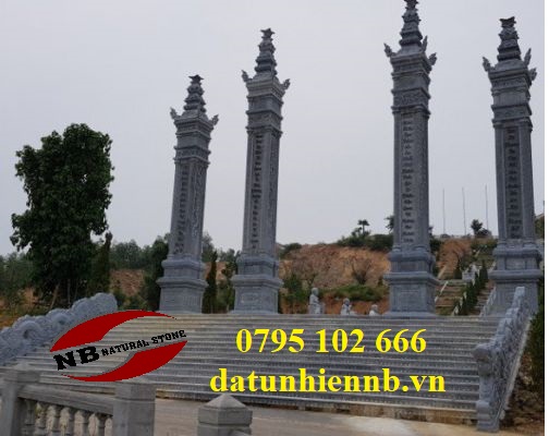 Cột đồng trụ đá là biểu tượng của các công trình kiến trúc tâm linh. Được ví như người vệ sỹ đứng canh gác, đảm bảo sự bình yên trong sạch cho không gian văn hóa tâm linh. Cột làm bằng đá khối 100% bao gồm chân đế cột, thân cột, đầu cột... liên kết với nhau bằng mộng đá âm dương, thân cột khắc câu đối hoặc rồng phượng.