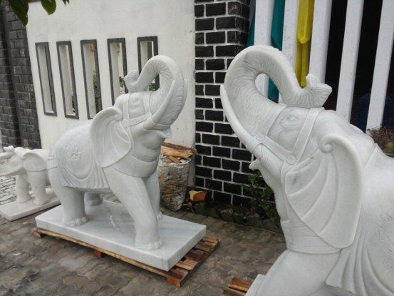 Đối với tượng voi đặt ở những công trình tâm linh như: Đình, chùa, miếu… thường làm bằng đá xanh đen hoặc đá xanh rêu. còn những mẫu tượng voi đá đặt ở: trước nhà, cổng công ty…. thì thường làm bằng đá trắng hay đá vàng. Trong phong thủy thì hình tượng con voi được coi như có ý nghĩa mang lại thành công, tượng trưng cho sự thông minh, sức mạnh, nhân phẩm tuyệt vời, cát tường nên người ta thường dùng voi để chiêu vượng vận khí.